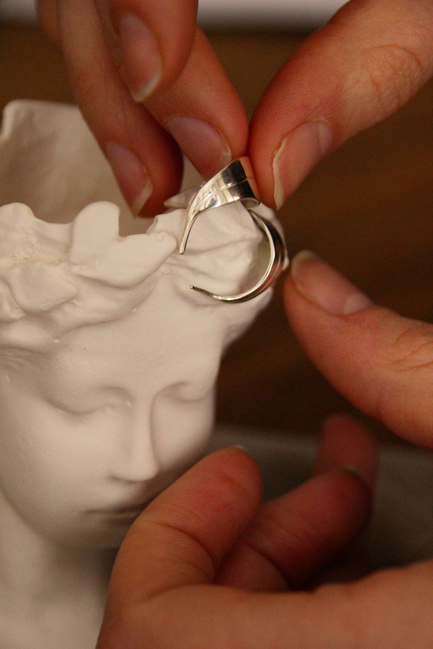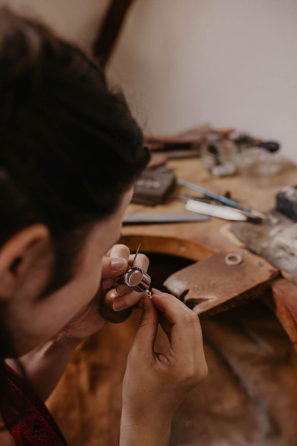 Je réalise des bagues, boucles d’oreilles, pendentifs et bracelets mais également des alliances ou des bagues de mariage. Je peux également faire des réparations de bijoux.