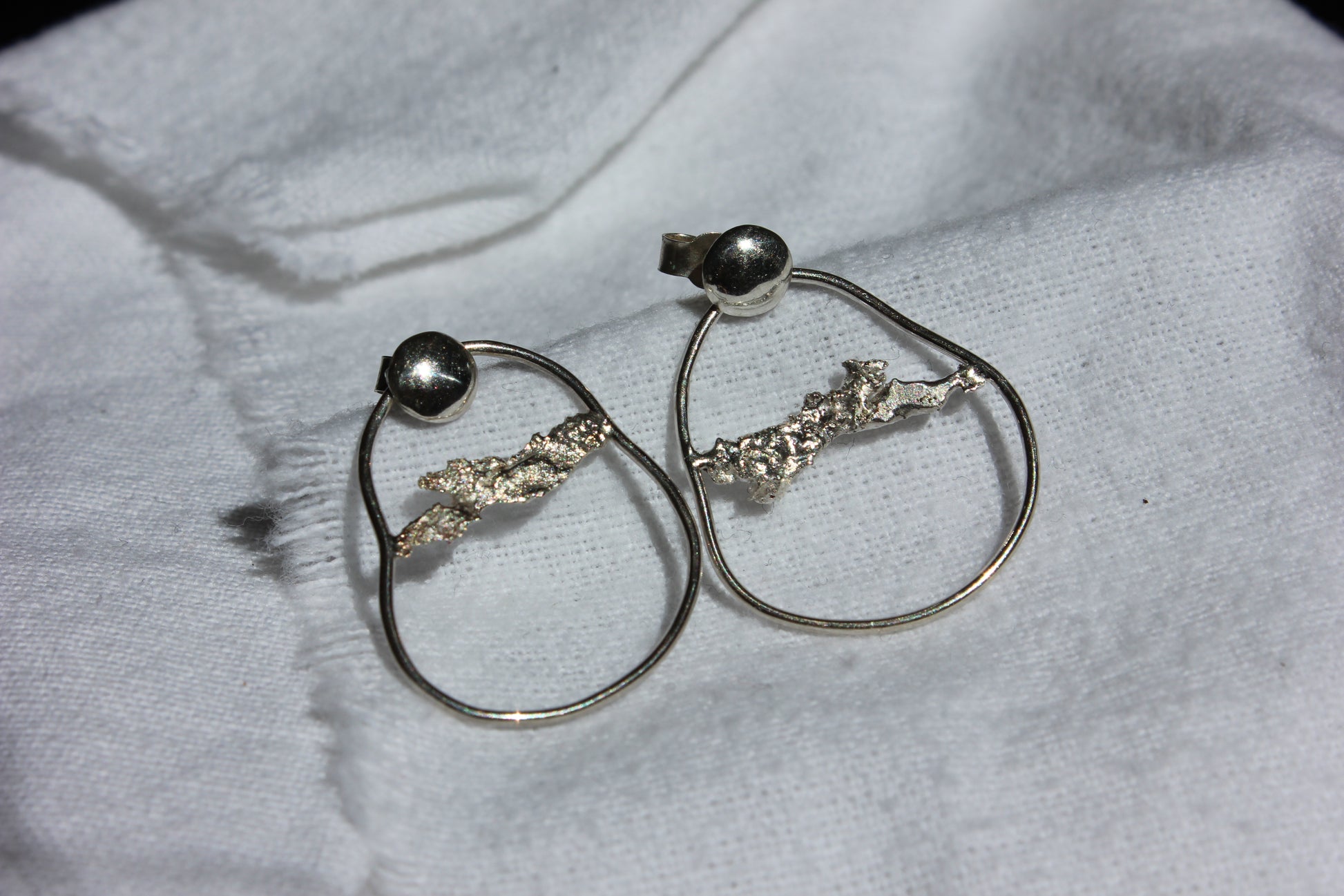 Ces boucles d'oreilles en argent 925 sont appelées "Fusion" car elles sont obtenues par fusion du métal au chalumeau. Le résultat est une forme aléatoire, ce qui est différent de la paire "fusion" grande taille, c'est que celle-ci est soudée sur un anneau de forme organique de 1mm. Chaque fonte est aléatoire, ce qui en fait un modèle unique pour chaque boucle d'oreille.